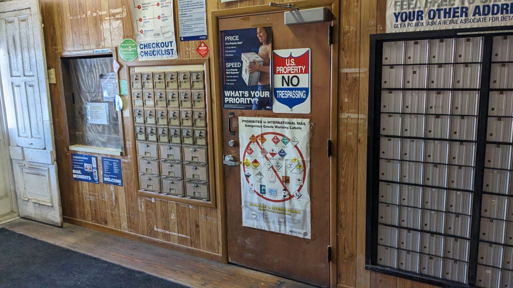 This building is only open between two and four hours a day which I’m guessing has led to some P.O. box frustrations, judging by this sign.
