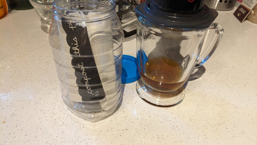 I scooped as much out as I was comfortable with. This involved dodging “icky” garbage and trying not to get burned on fresh coffee grounds.