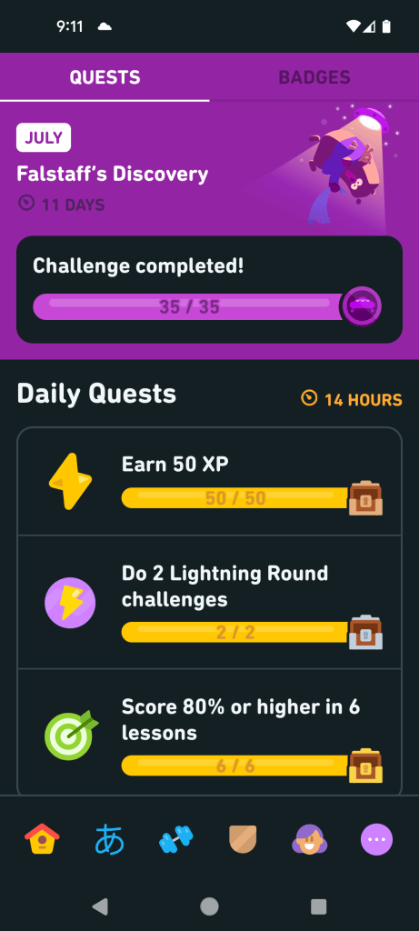 Another topic that I have chosen to focus on is learning Japanese with DuoLingo. I have set a goal for myself to get the badges that require the completion of 30+ challenges every month. If I can complete 2 on most days of the month this will not be an issue.