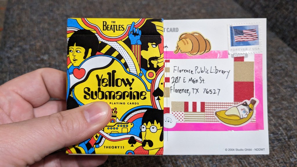 I had a lovely visit to Andice & Florence Texas recently and I thought it would be nice to send a thank you card. On this card I shared that some of the bookmarks that I gathered have been sent to Italy which I think is something I would enjoy reading if I were one of the folks who worked at this library.