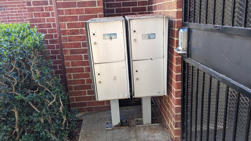 While I was gathering the mail I noticed these package boxes that are never used any more and also that there is a bit of a “hollow” behind them.