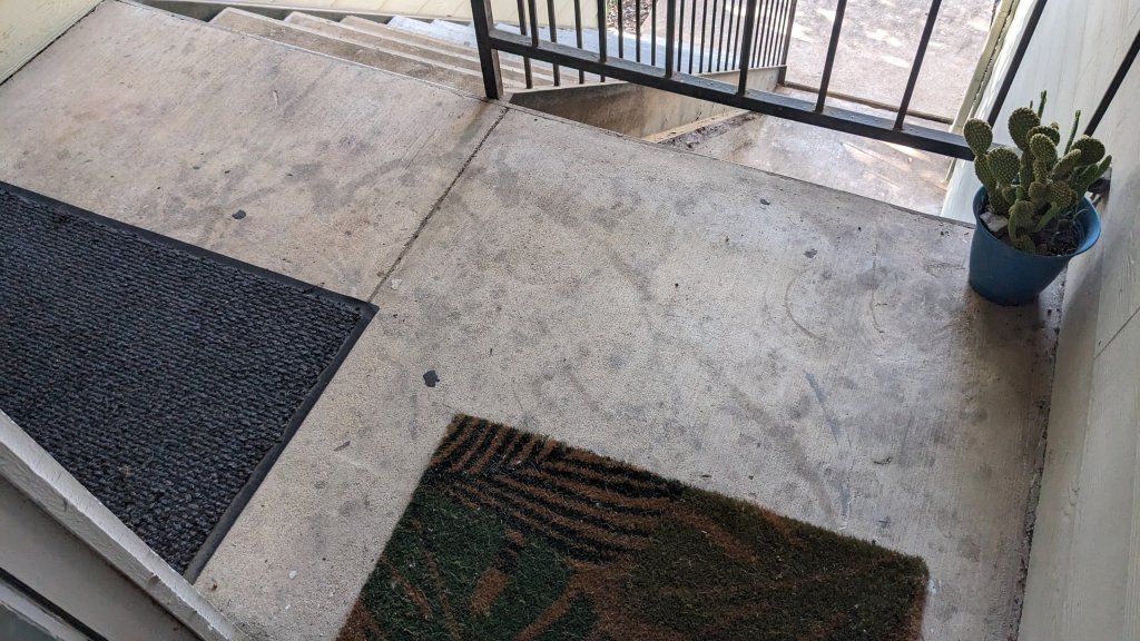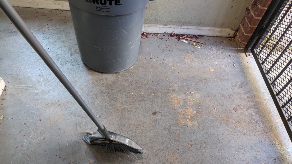 I also took a moment to clean the stairs and front porch… Which sent a ton of debris down to the first floor which I also swept up because I am not a monster.