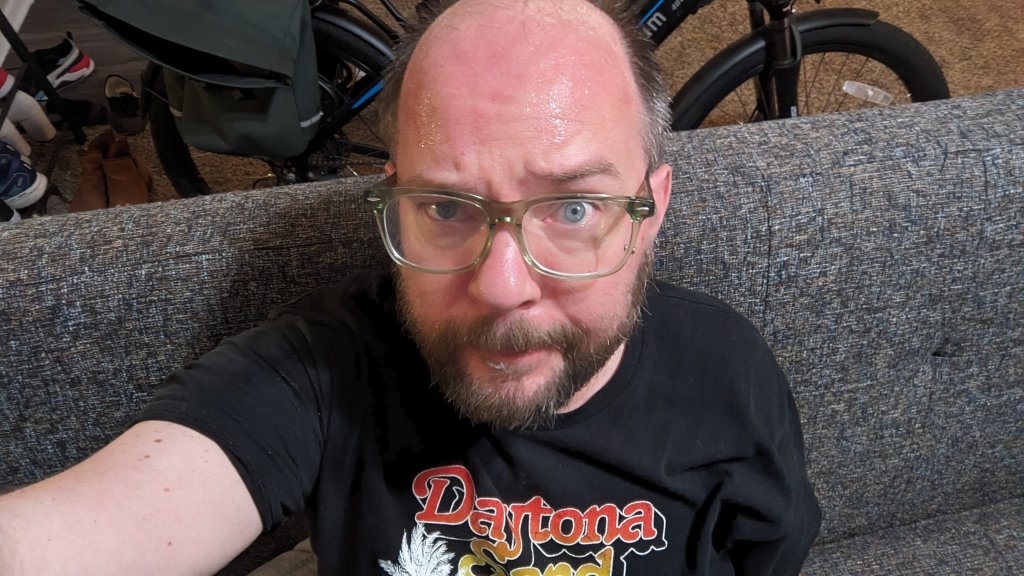 Eli was quite concerned about me. Partially due to the mysterious sounds outside (it was me sweeping the front porch) and because I was so sweaty. He is now cuddled up next to me on the couch… And now there’s another cat making noises…