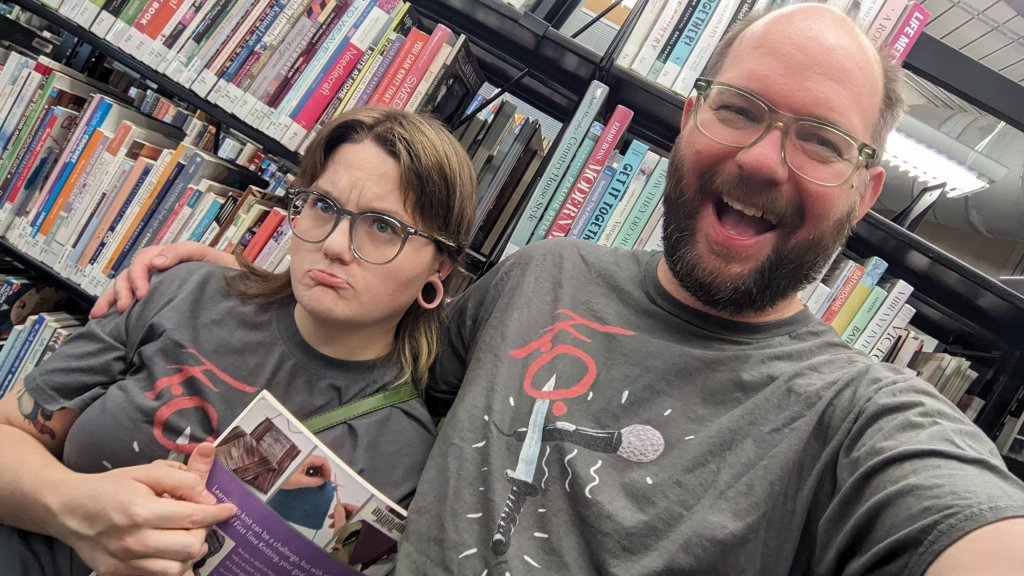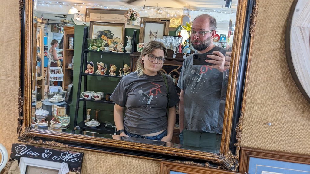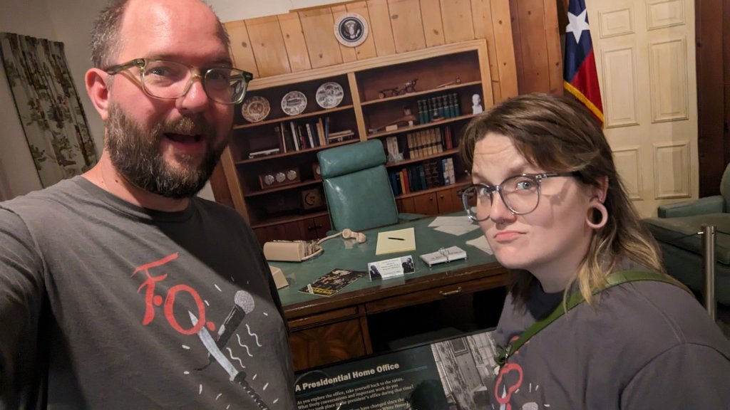 It took us a moment to find matching shirts as we had just started a load of laundry, but we were able to pull it off with our matching Fight Opera t-shirts.
