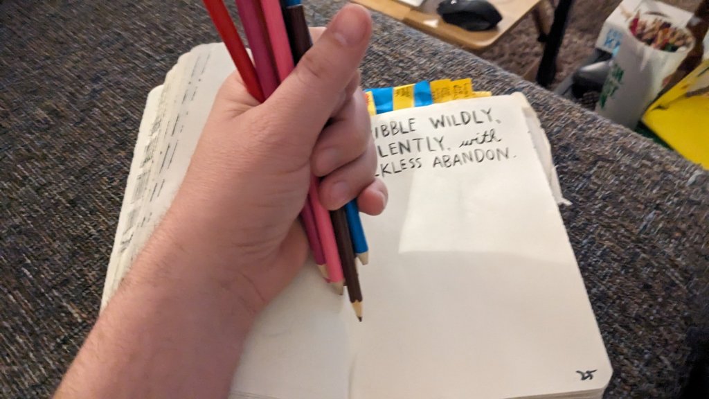 Wake up, DuoLingo, vitamins, coffee, Wreck that journal, video games