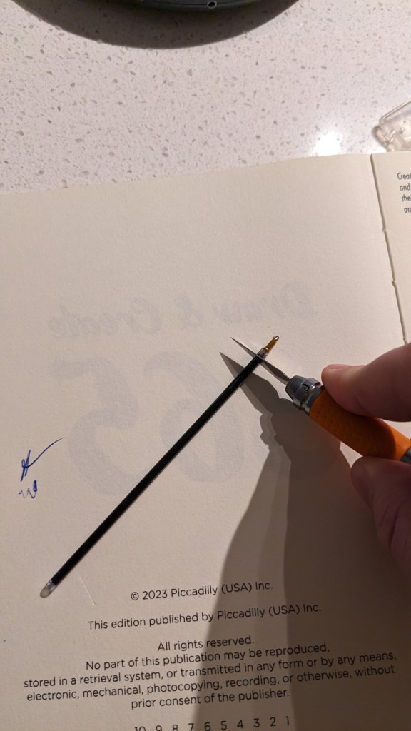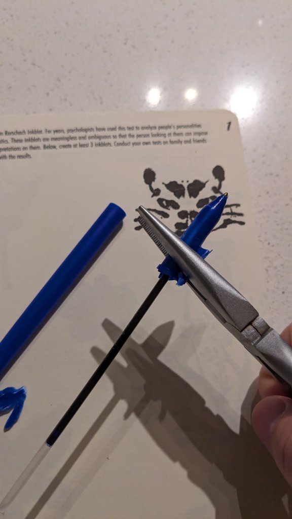 To my lovely wife who reads these posts, the above step caused the end of the pen to shoot off.