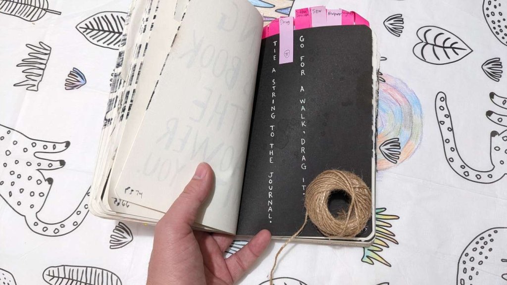 I have two Wreck This Journal missions that have been completed. The first of which is the “drag the book” challenge.