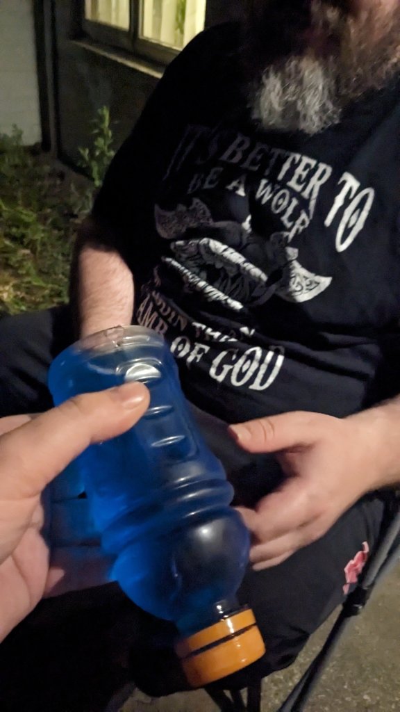 This is also the night that for the first time in my life that I shotgunned a drink. Tony as well. He tried the Gatorade and I tried a Tahitian Treat.