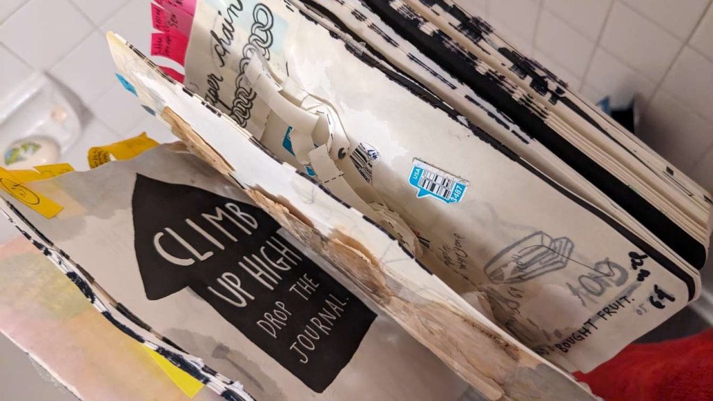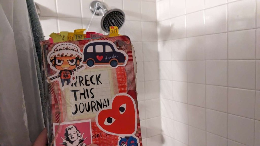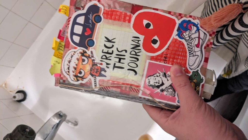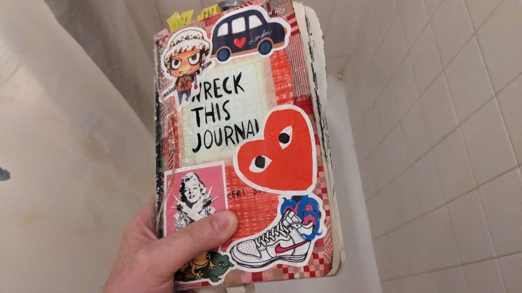 As per protocol with Wreck This Journal, I turned a fan upon the book after another wet activity.