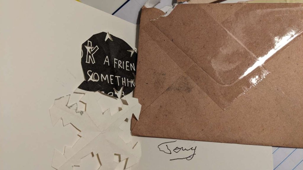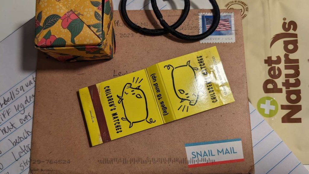 I thought a letter had been lost in the mail and then returned to me, but this was a self-addressed stamped envelope that I had shipped to my pal Tony in Michigan.