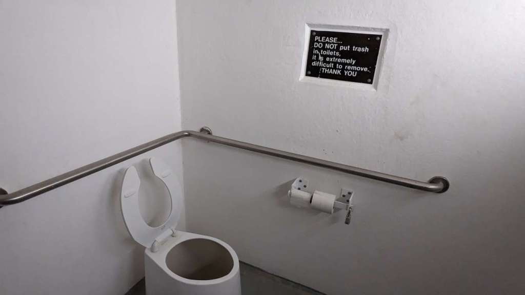 Opting out of a trespassing ticket I found my way to the state park which has a funny outhouse sign.