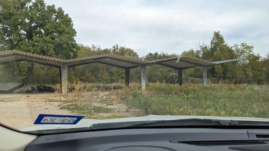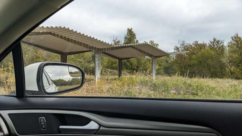 This drive was an unusual one. There are a lot of abandoned buildings and structures in the area and at one point I pulled over to take care of a thing. Let me show you.