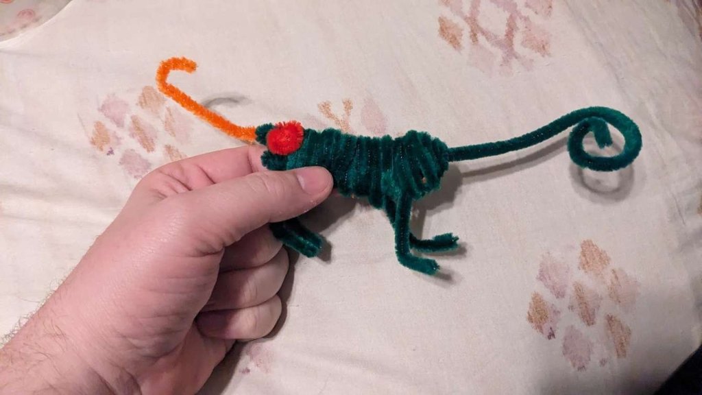 I also made a chameleon out of pipe cleaners.