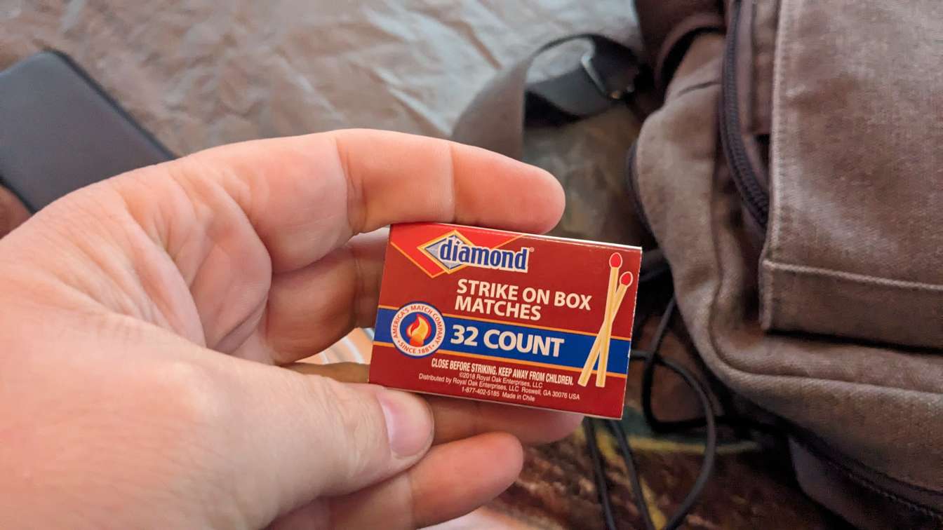 All of my most basic camping items are kept in here such as rope, matches, a few tools, postcards, pens, pencils, cell phone charger batteries and more.