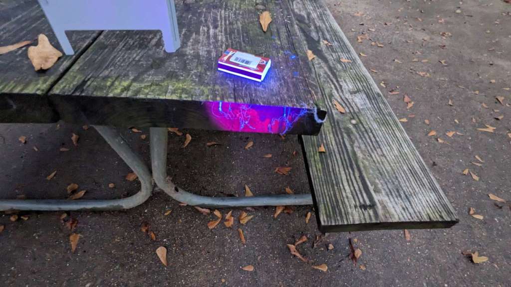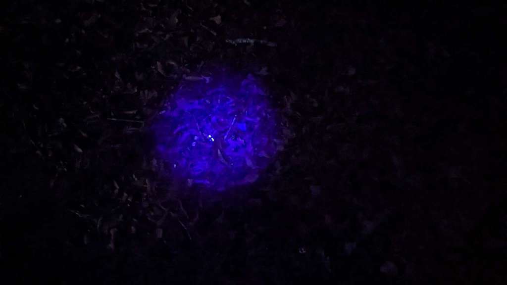 So if you want to pick up garbage at a state park, I suggest waiting until it gets dark and using a black light to locate debris like this.