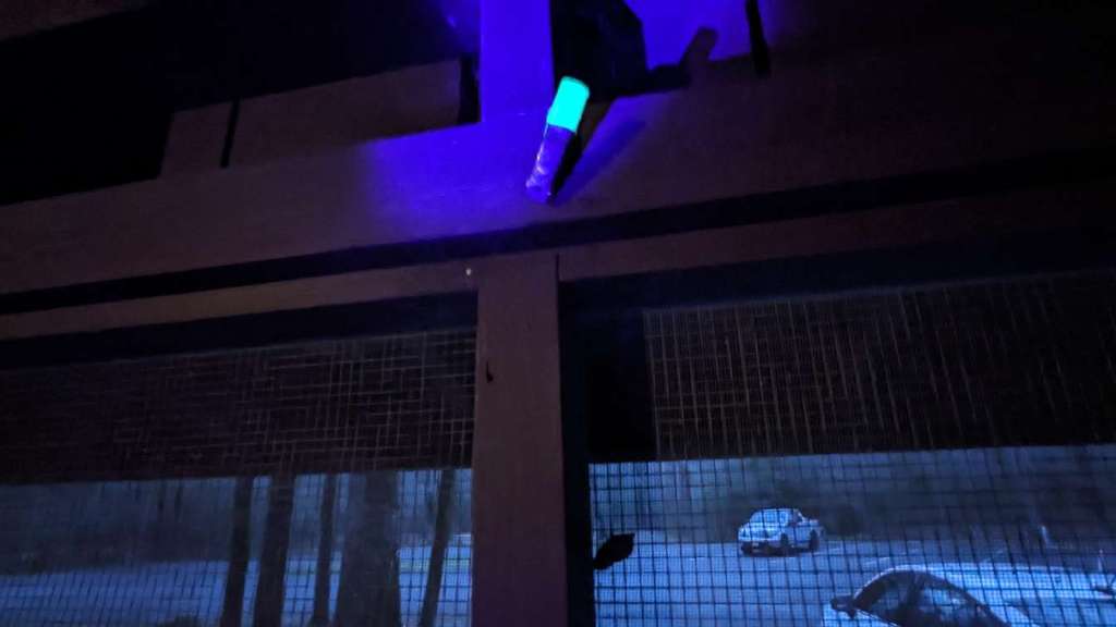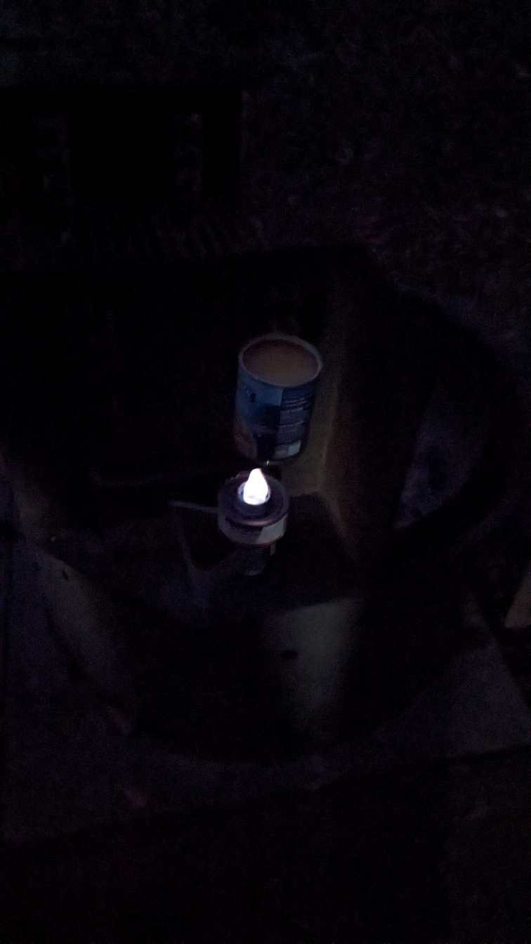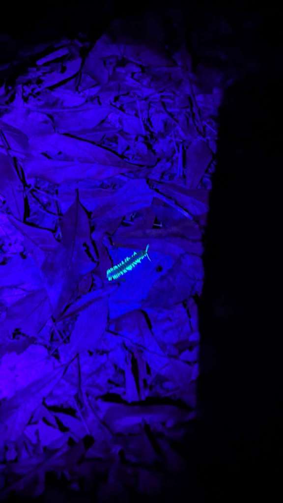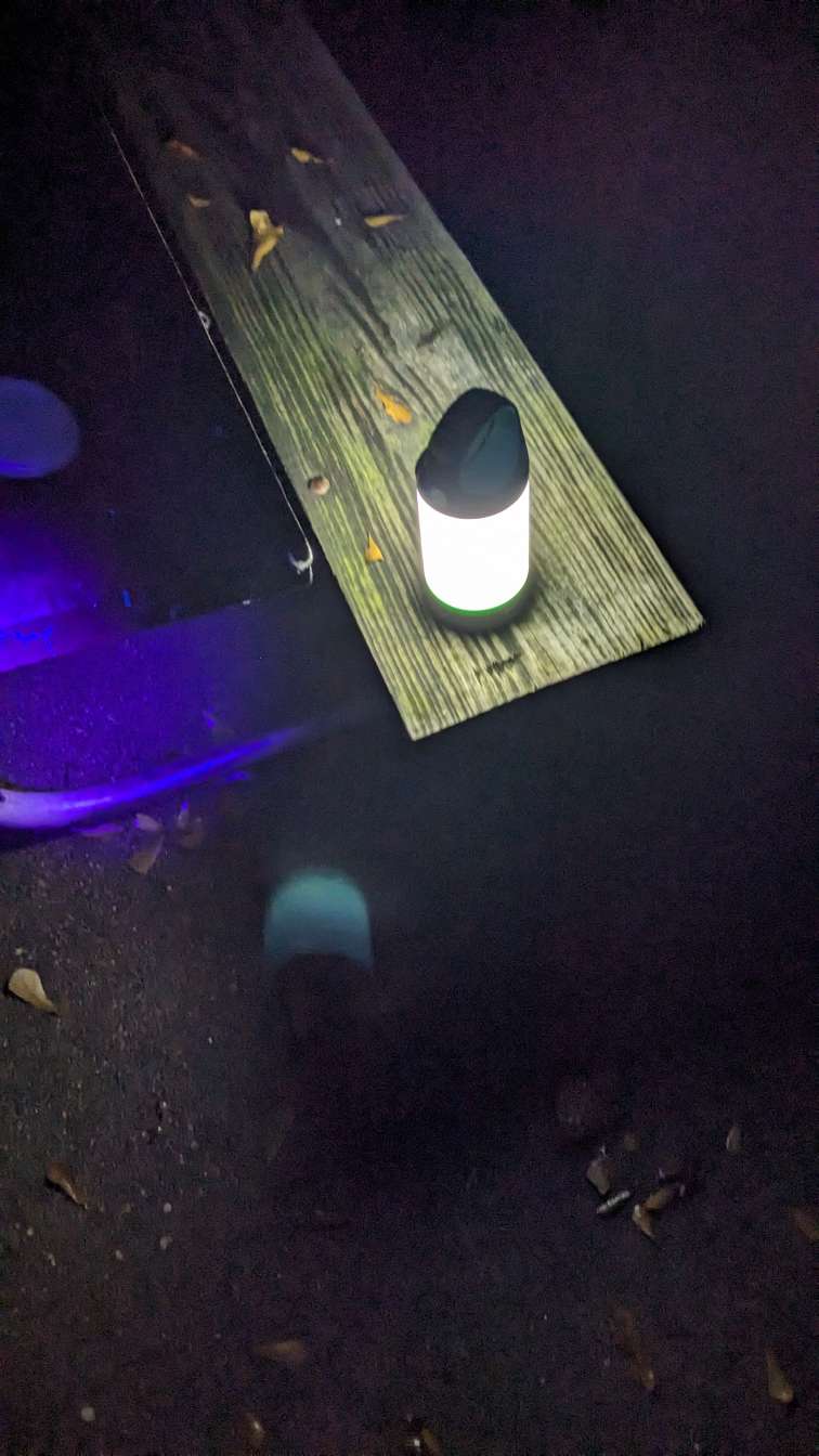 I did not want to leave the flame unattended while this soup was warming up, but I was bored and had been waiting for a long time and so I decided to return to the black light flashlight to look around the campsite a bit more this way I could entertain myself while not veering too far from the open flame.