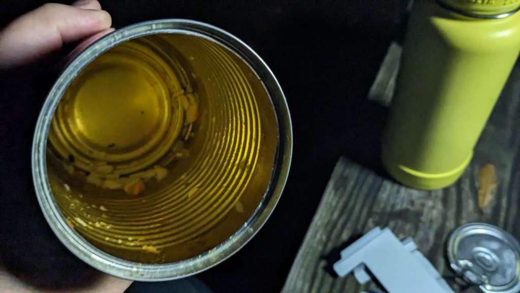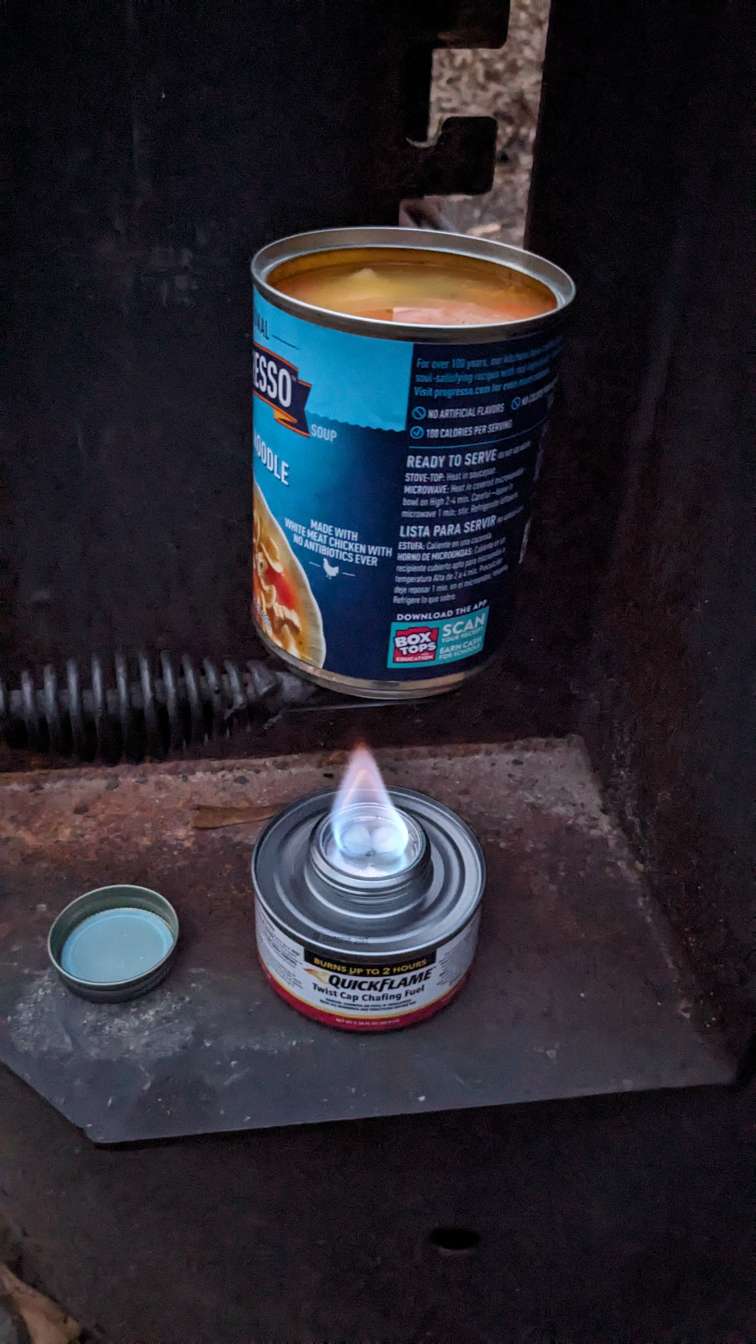 I would occasionally stir the soup with my finger as a way to test whether this was ready to eat and to ensure that I would not burn myself when I picked up the can.