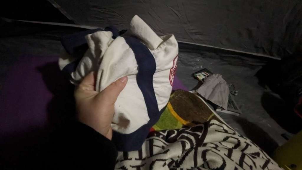 It was this moment that I realized that I had forgotten a pillow and so I used a reusable grocery bag filled with laundry for a pillow.