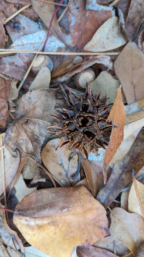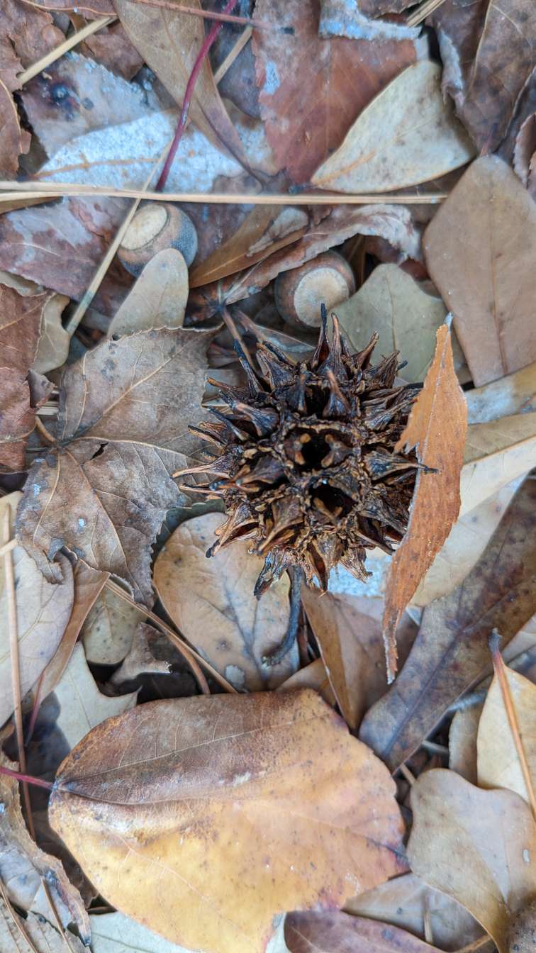 I do regret to say that I foolishly moved around some of the leaf debris in order to take this picture, but I did this jostling with the flashlight and not with my hands, thank goodness.
