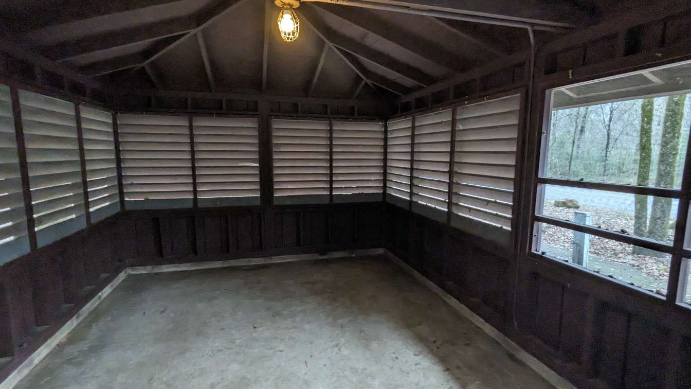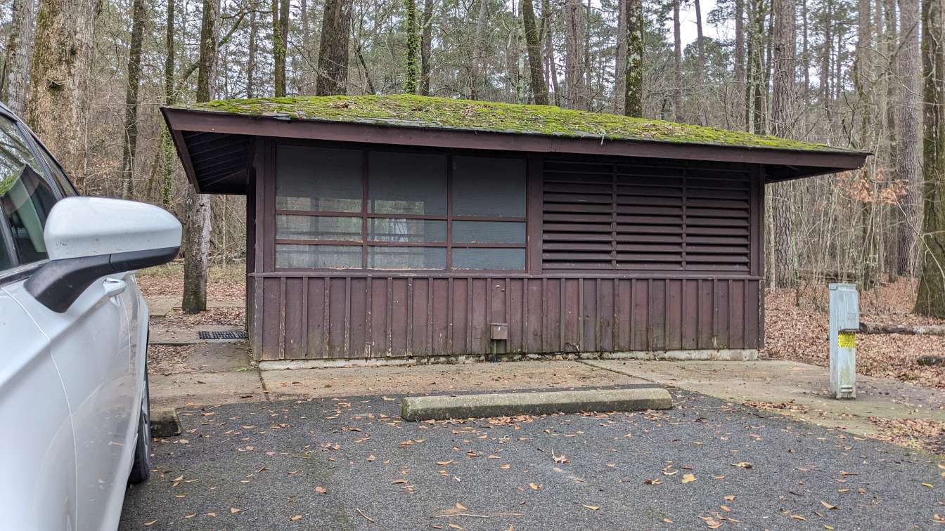 Behind this screened shelter was a sand pit. I think that’s where a tent is supposed to be set up.