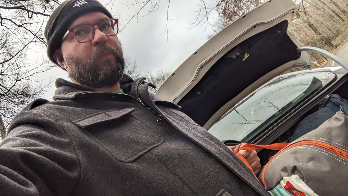 I am wearing my gloves that I was thoughtful enough to store in my heavy coat’s pockets just for situations like this and I place my car keys into the coat pocket so that I do not accidentally set off the car alarm.