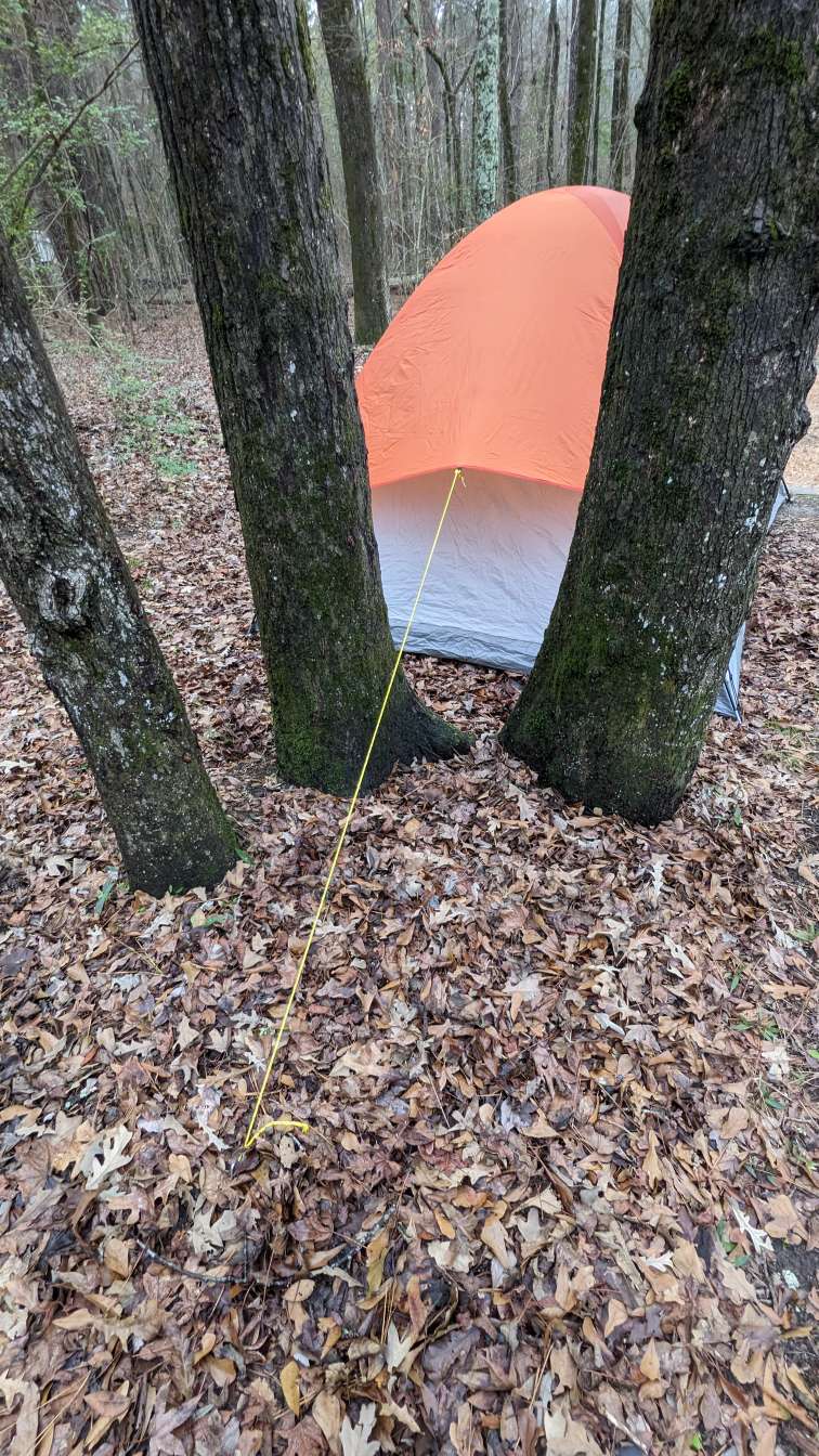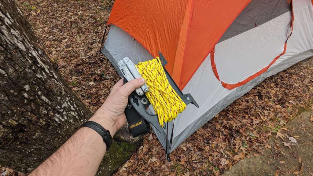 Note. One of the strings attached to the roof bit of the tent has also gone missing and so some dollar store rope that was cut with an expensive multitool was the fix here.