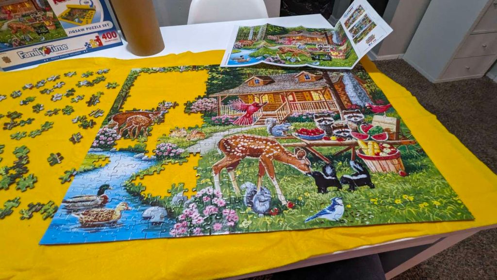 After their departure I broke out my newest micro adventure goal which is to complete a jigsaw puzzle that has less than five hundred pieces.