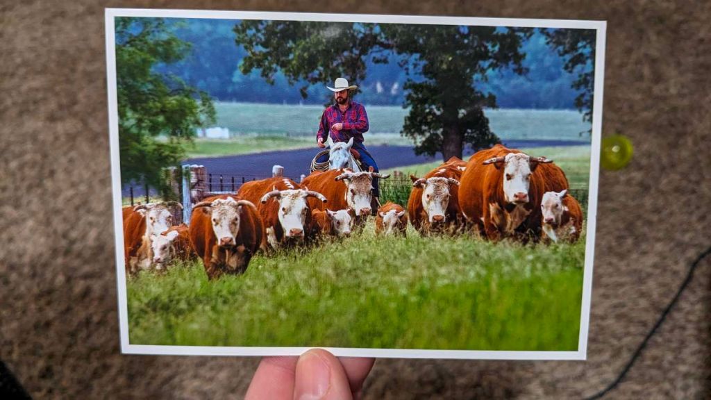 First and foremost, Tony gets a card. A LBJ historical site postcard of a cowboy that is far too glossy to write on.