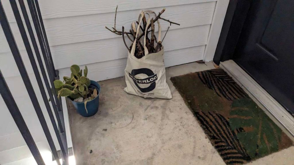 I gathered some sticks from around my apartment complex, but they are wet from three days of rain so my bag of sticks is now sitting in front of my apartment drying out.