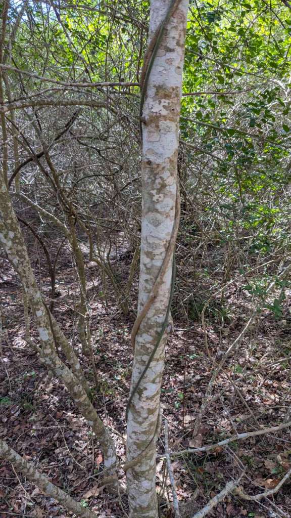 Back at our campsite Lauri and I chat about how we want to spend the day and I take a picture of this tree that has vines wrapped around it.