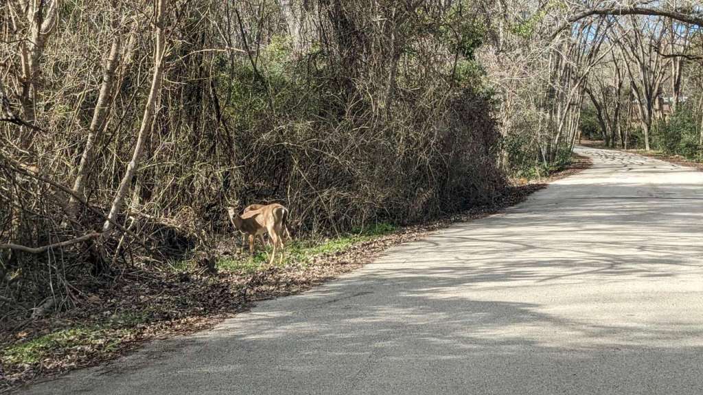 The deer here seem to be accustomed to humans based on how close we were able to get before they decided it was time to run away.