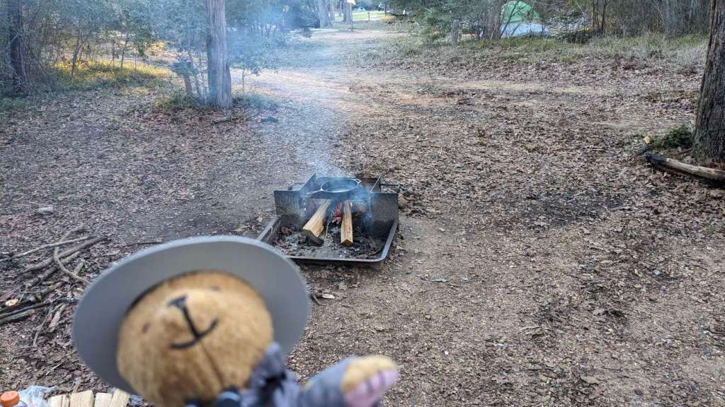 While the fire is getting started, let’s take some pictures with ranger bear.