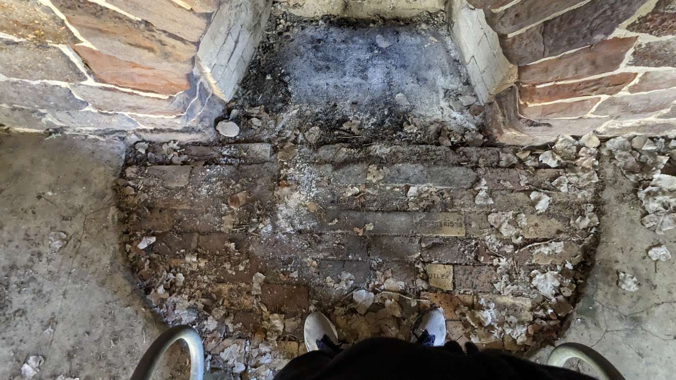 On the opposite side of this chimney is what looks like a pizza oven, but where a metal plate once rested has been filled in with concrete. (Apologies for the lack of a picture).