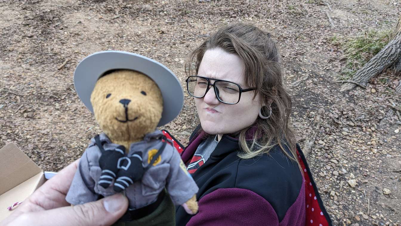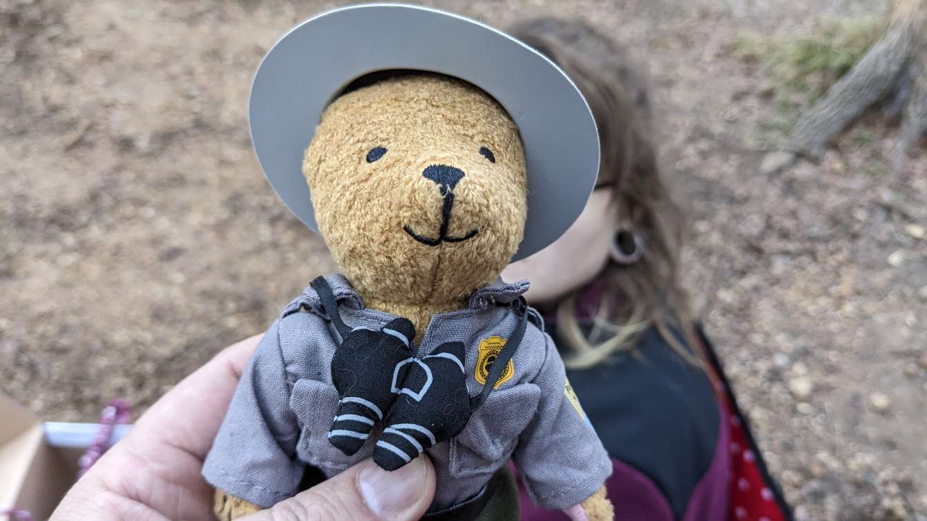 While the fire is getting started, let’s take some pictures with ranger bear.