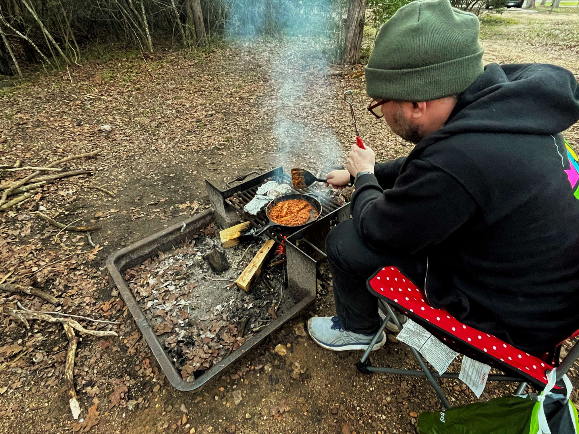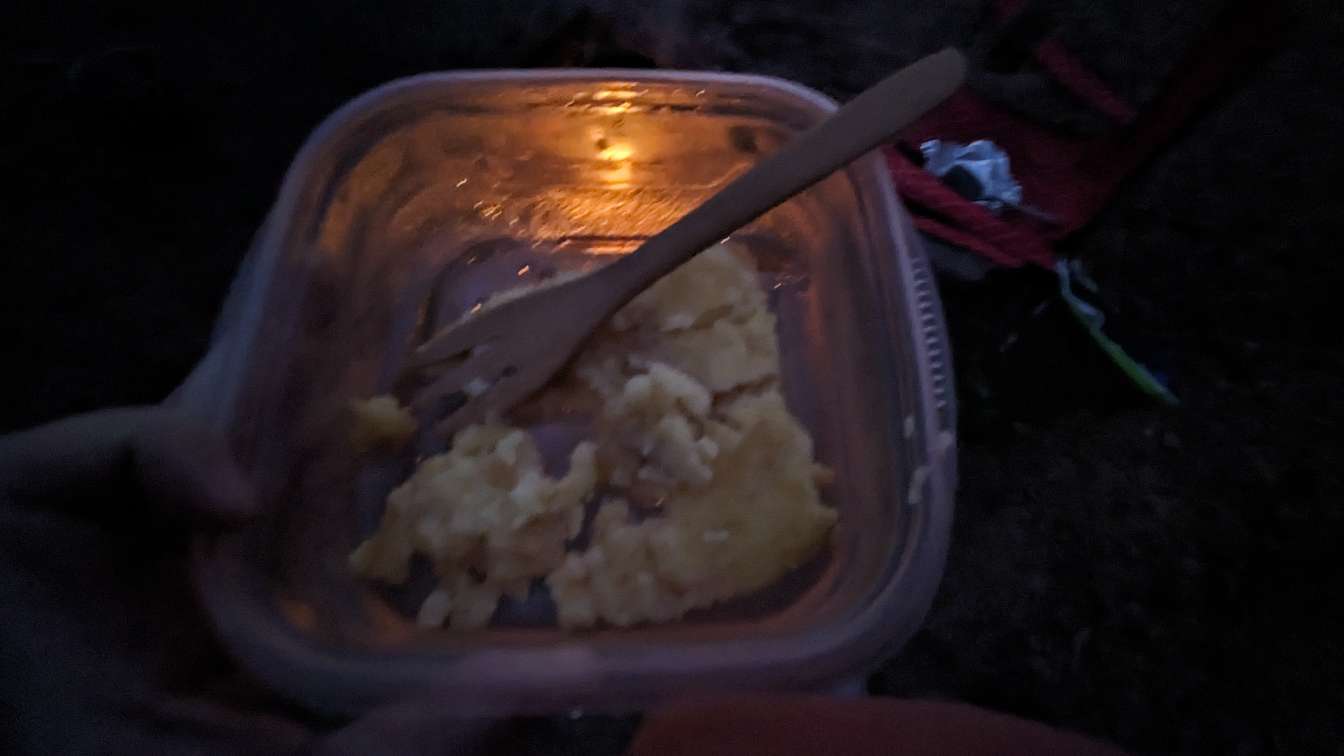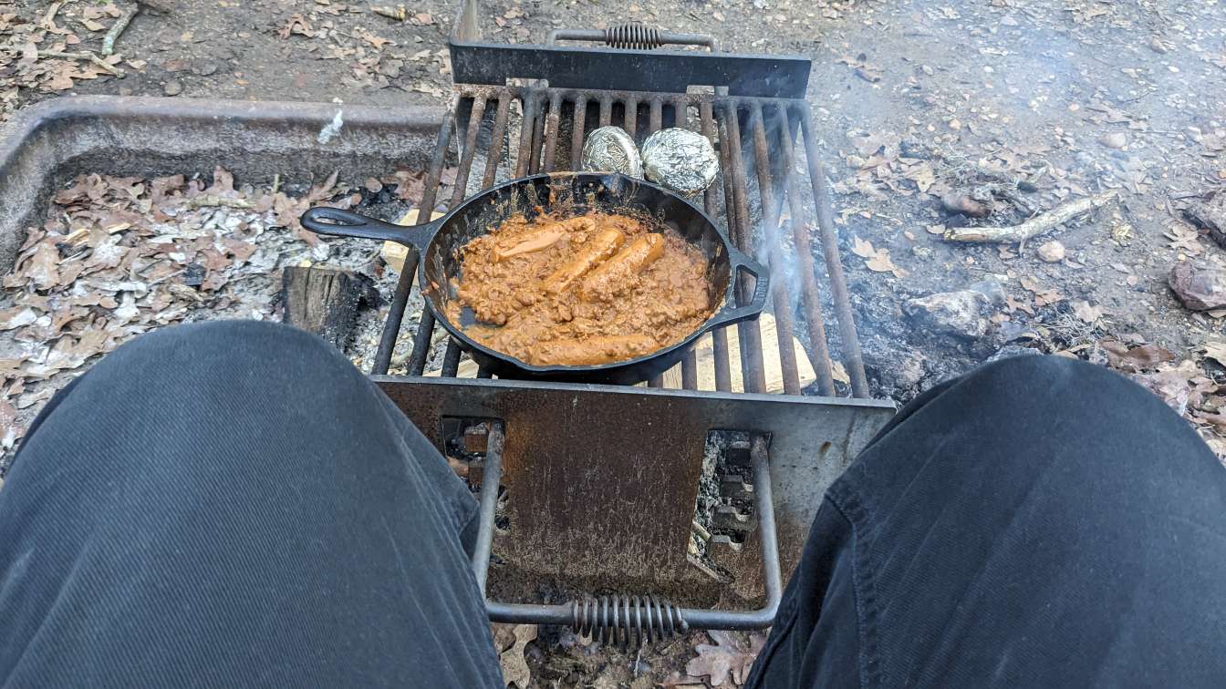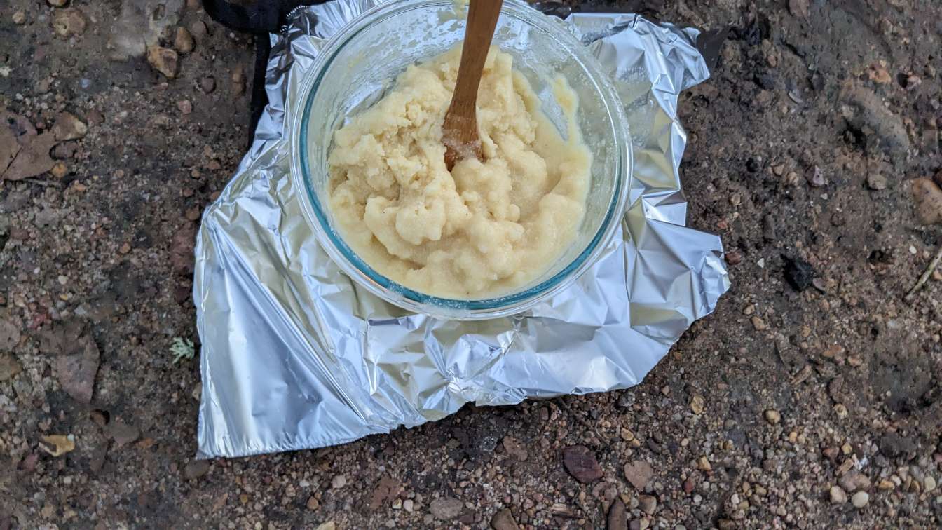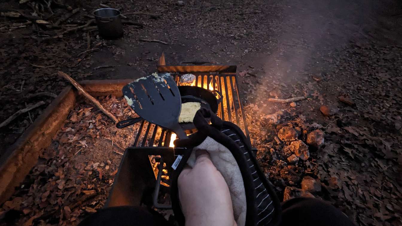 Also in this picture is cornbread that we prepared the night before and warmed up a bit over the fire.