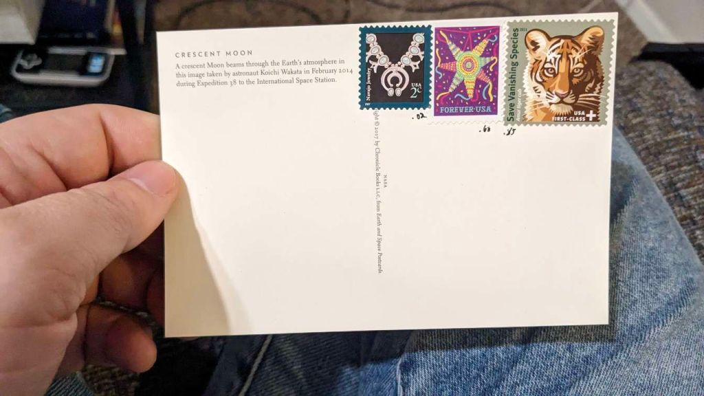 The profile of the guy sounded a lot like my wife Lauri and they guy is into moon stuff and so I sent this card.
