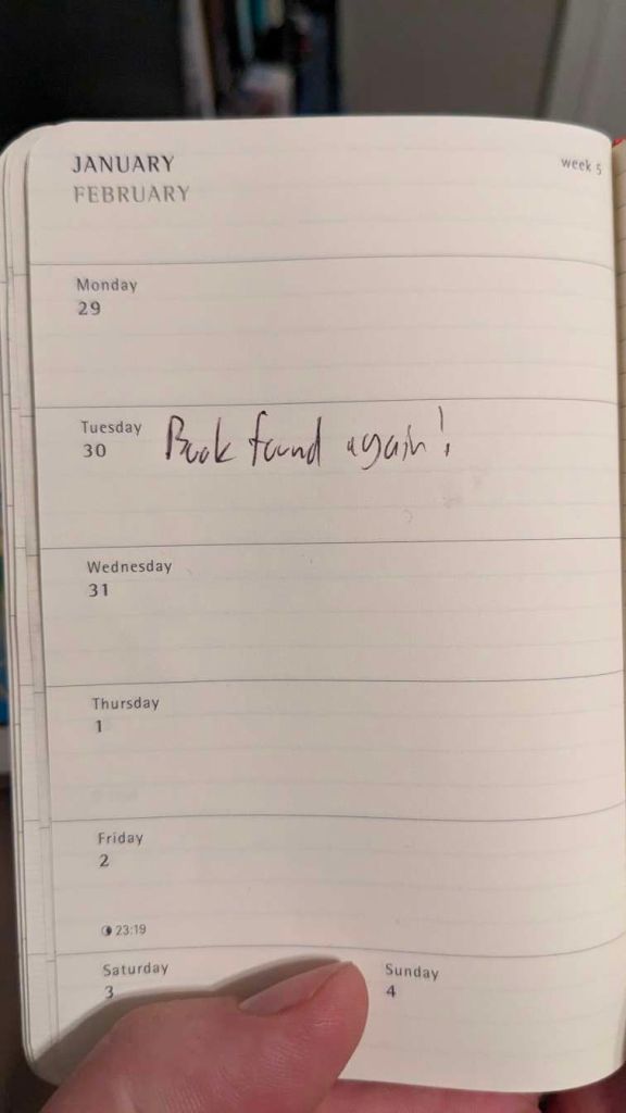On the evening of the 30th I was rearranging my books and I found my missing planner!