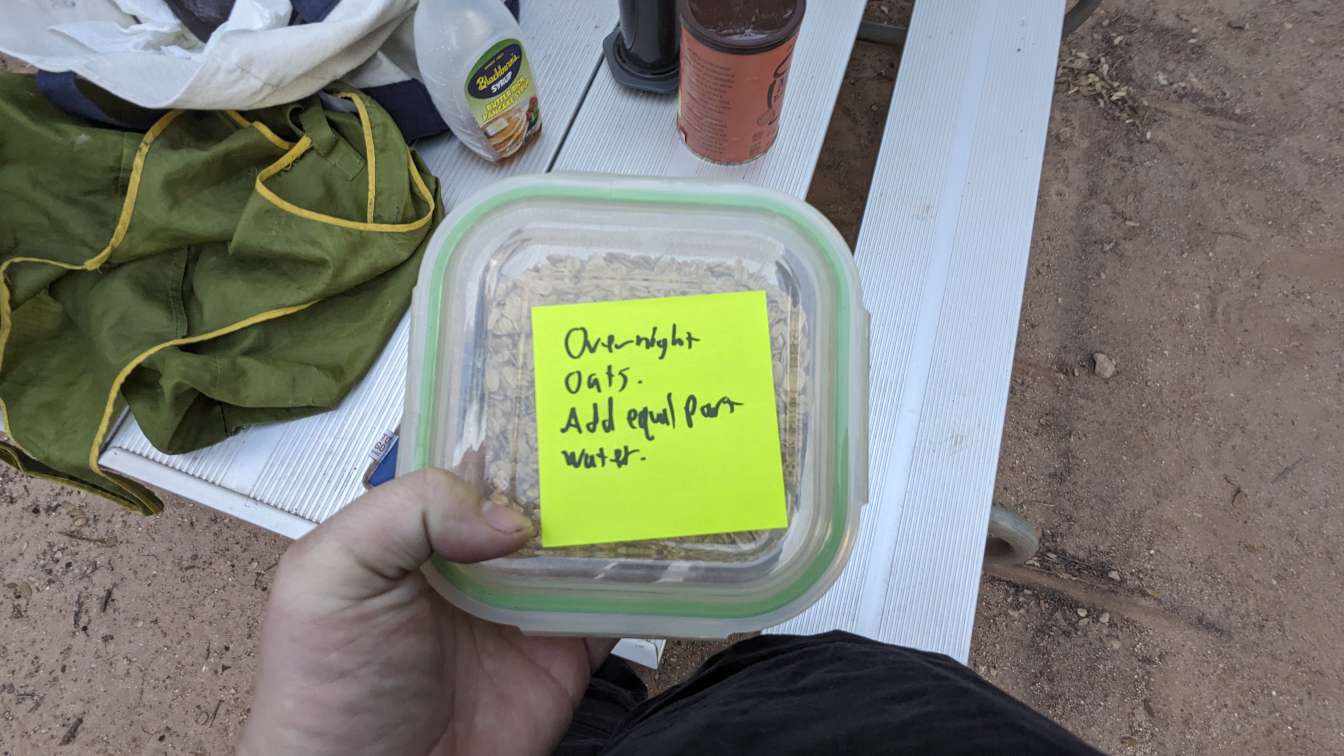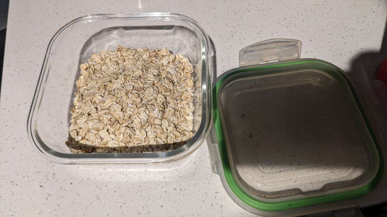 First, let’s get some oats into a container that I can make overnight oats with so that I will have breakfast tomorrow.
