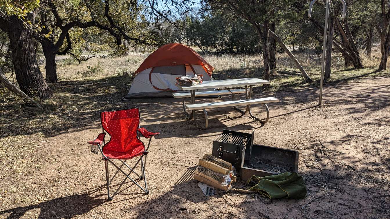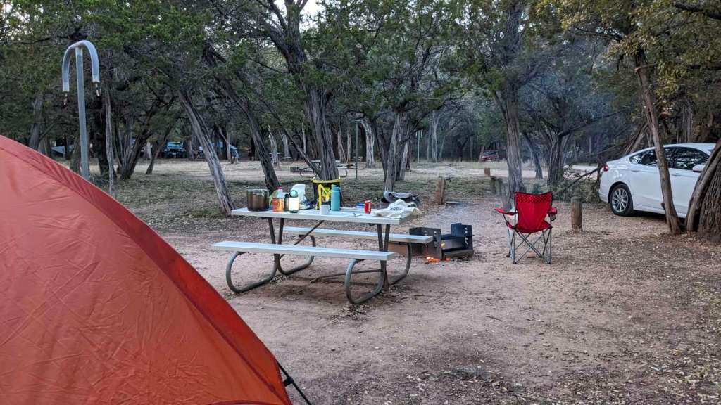 After a quick check-in I drive to the campsite and I come to realize that I am not as close to the bathroom as the map made it look like I would be.