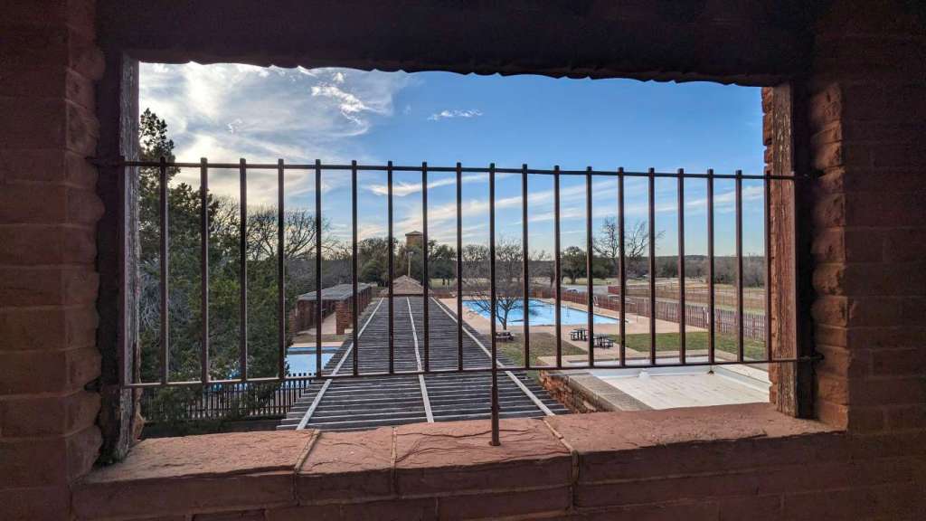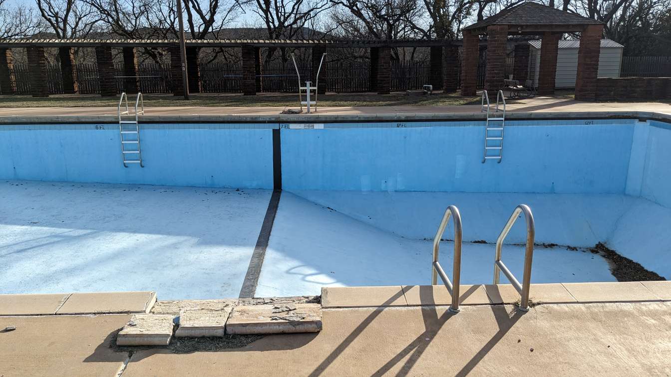 Right next to the water tower is a pool which is currently closed.