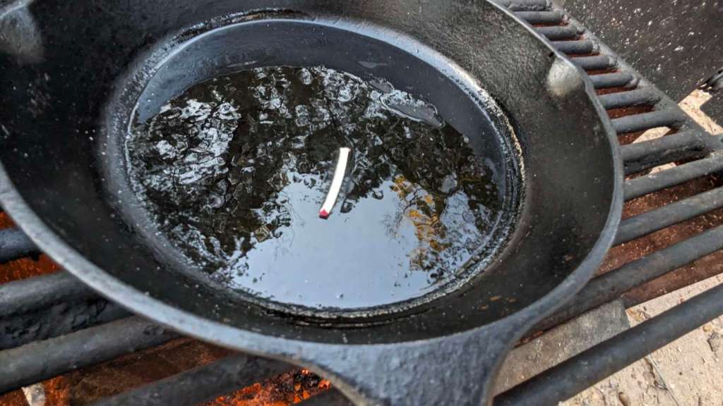 Oil added to the cast iron skillet.