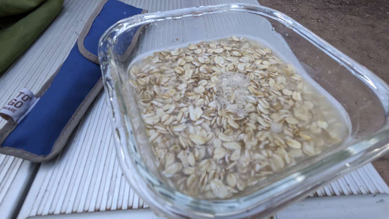 Now for those oats. Mix one part water to one part oats and let rest overnight to absorb the water.