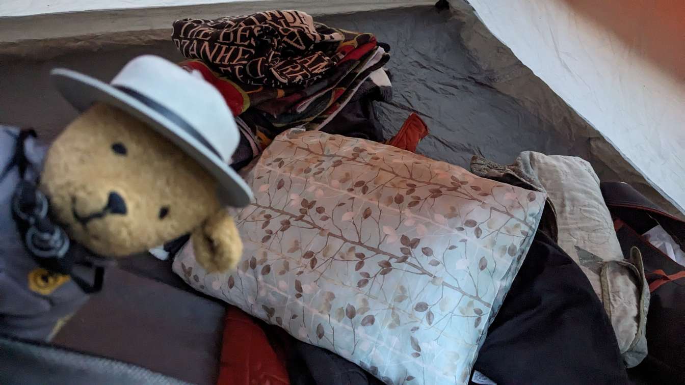 Ranger Bear approves of the tent setup.