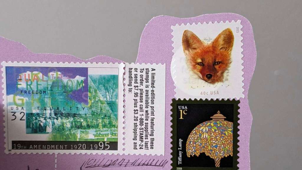 As this is a large postcard with a non-standard size, I used a forever stamp instead of a postcard stamp.