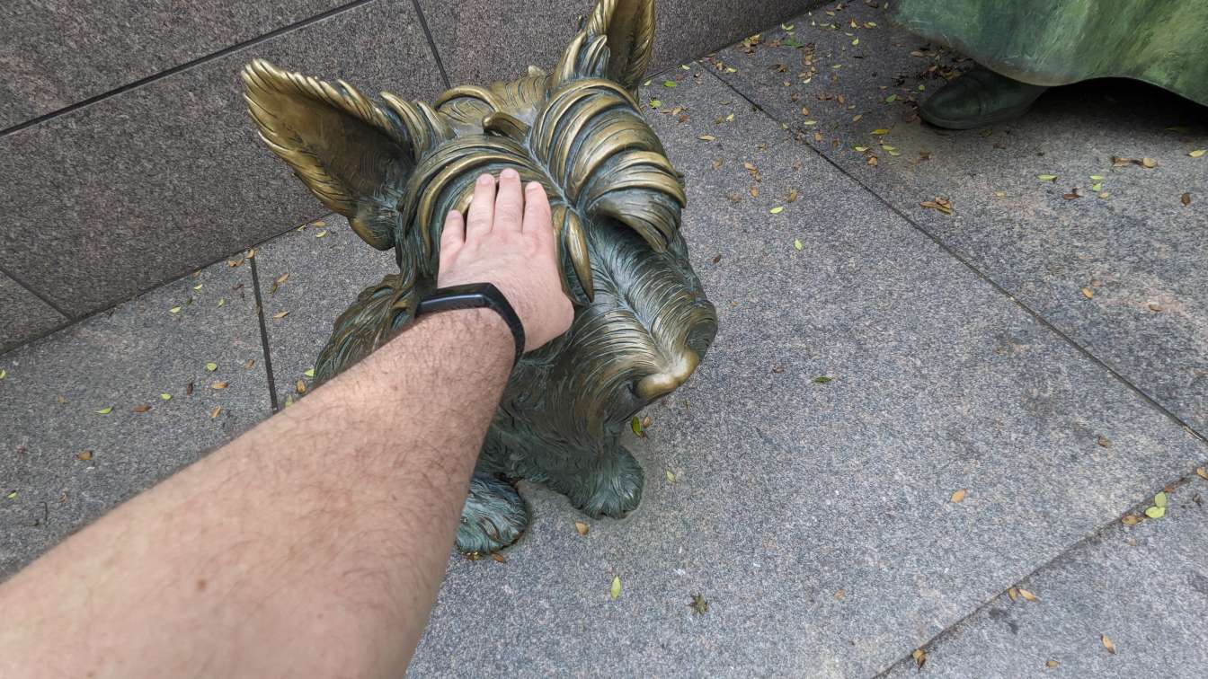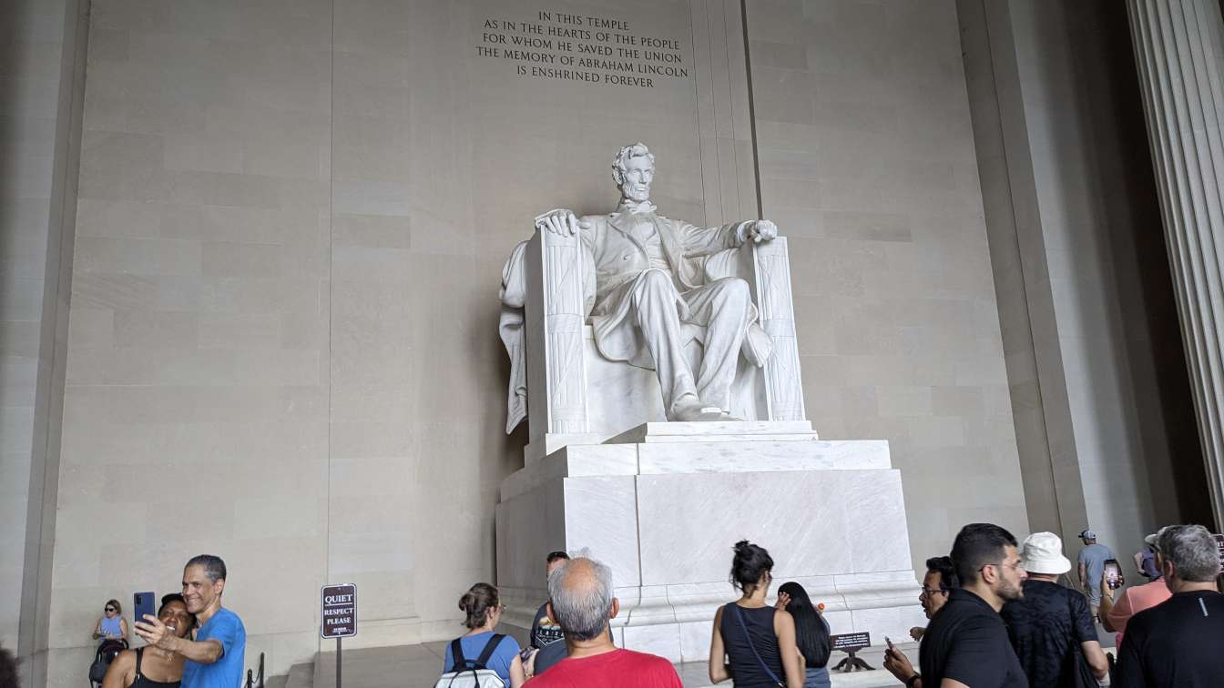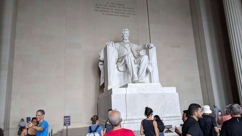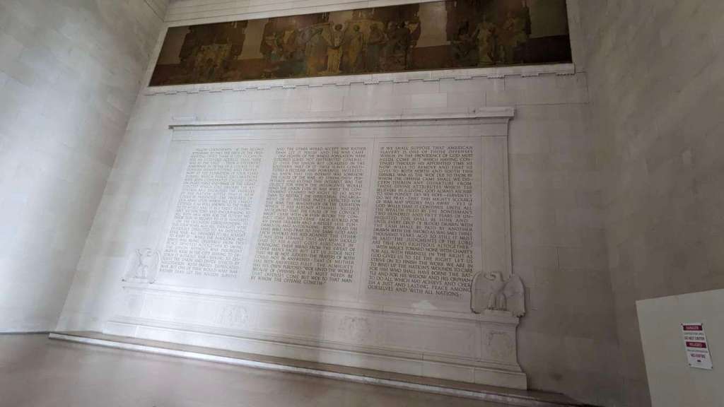 I overheard a ranger talking and he noted one hand open and one closed, but I did not hear the explanationso we’ll say that Lincoln was preparing to stand up and give a fist bump to George Washington.