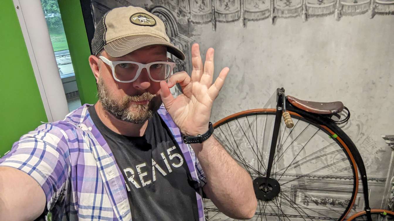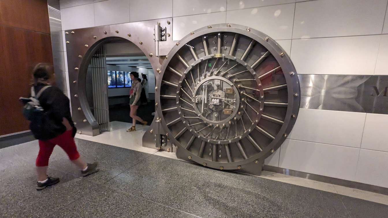 It felt weird taking a selfie with a small door in the corner near a security guard.