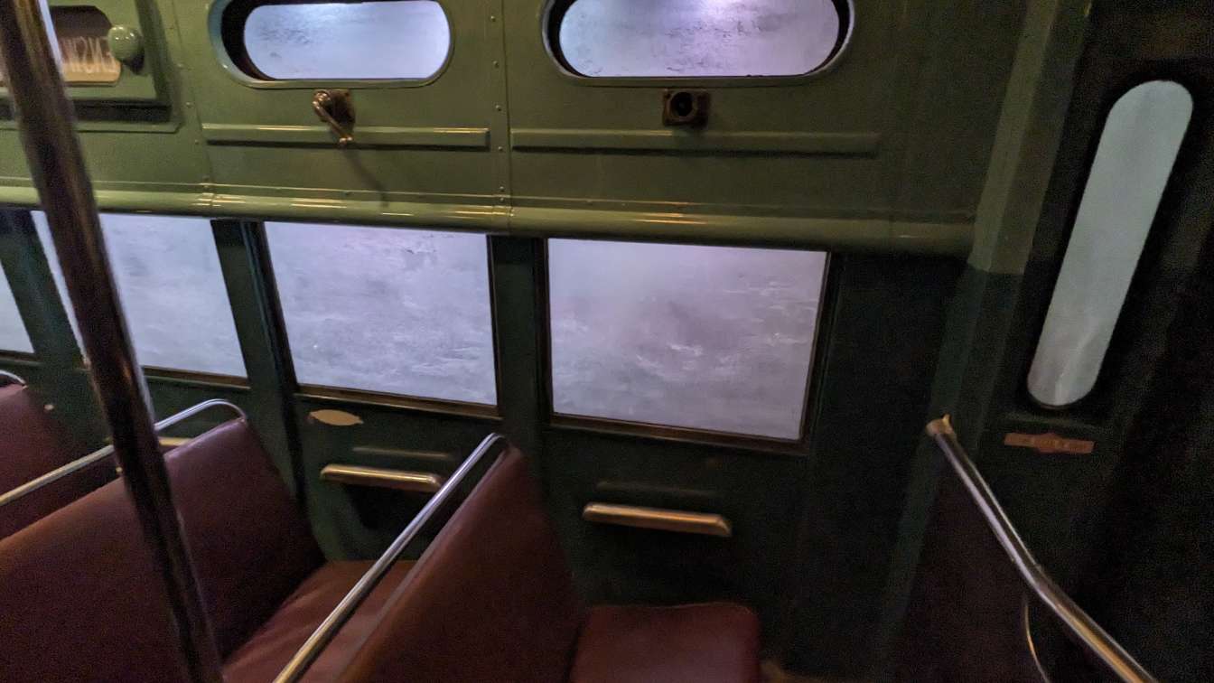 The main video room transports the audience from one location to the next on a roughly twenty minute loop with the occasional character appearing for a brief moment.