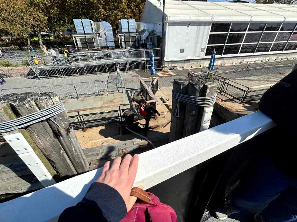 Where the… Um. Walking plank things connects is a bit wobbly as the ship is rising and falling with the waves.