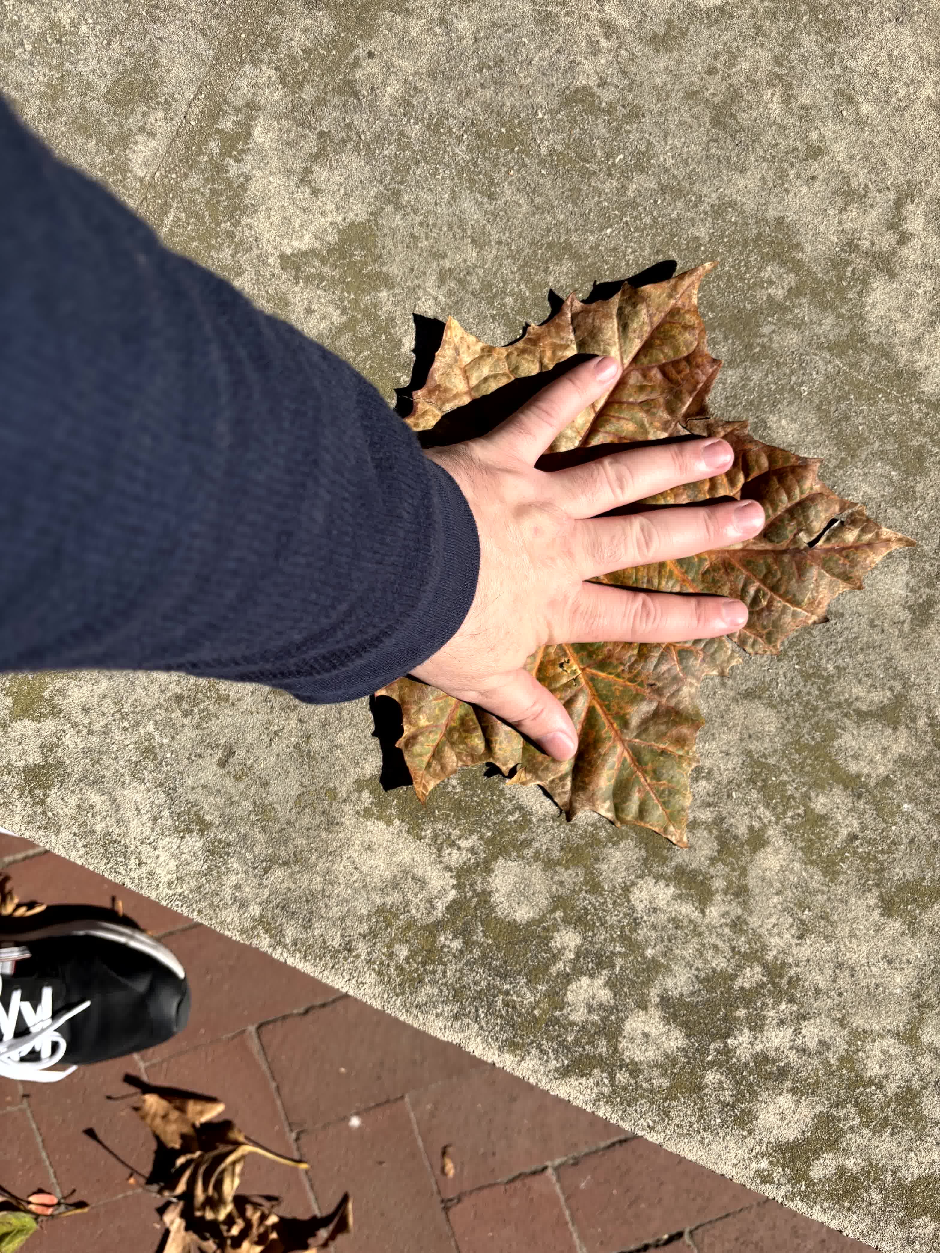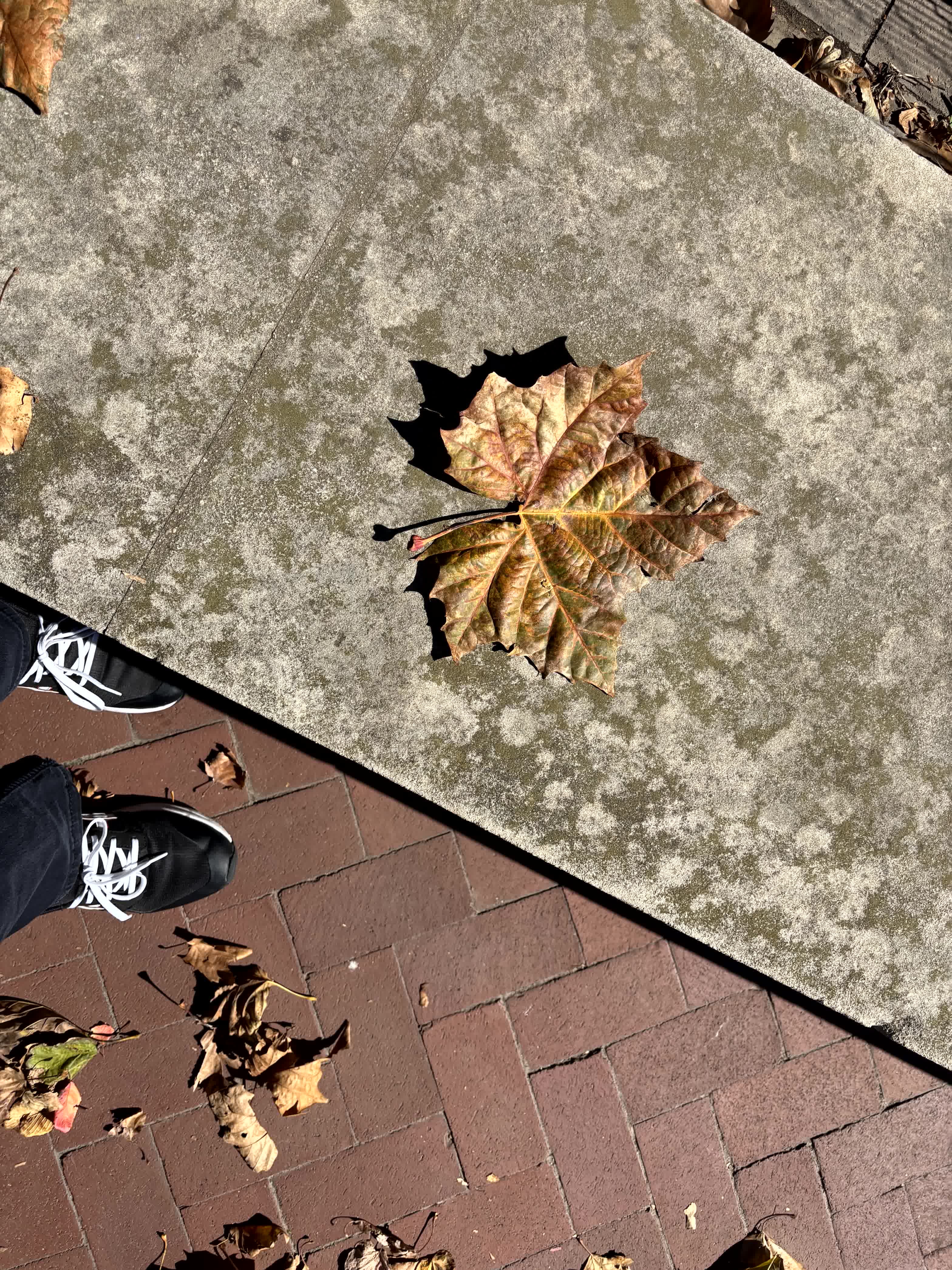 On my way to the statue I see the biggest maple leaf I’ve ever seen.