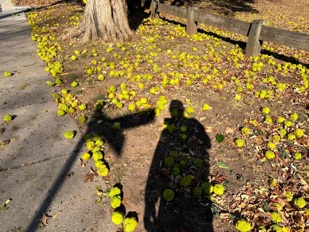And it turns out their Sycamore trees dump these sticky apple things on the ground.
